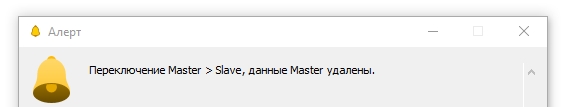 | Вы изменили настройки Master>Slave или Slave>Master копировальщика, не отключив перед этим процесс копирования, вследствие этого копировальщик сам остановил свою работу. Отключайте процесс копирования перед изменением настроек копира! |