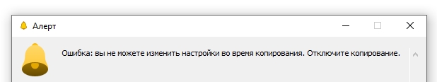 | Вы пытаетесь изменить настройки не отключив процесс копирования. Отключите копирование перед изменением настроек! |