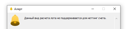 | Вы пытаетесь установить метод расчета лота, неподдерживаемый для неттинг-счета. Установите другой метод расчета лота. |