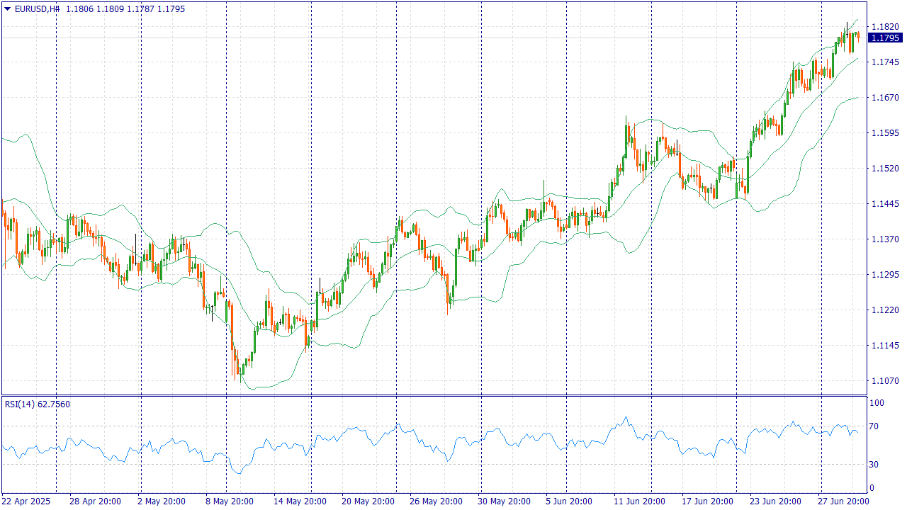 EUR/USD прервал свою победную серию, начавшуюся 18 июня, и в среду в азиатские часы торговался около 1,1800. Пара снизилась после достижения 1,1830, самого высокого уровня с сентября 2021 года, зафиксированного во вторник, что можно объяснить небольшим укреплением доллара США (USD).