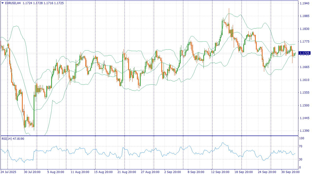 Со стороны США ключевым рычагом остаются ожидания по ставке: фьючерсы учитывают шанс снижения уже в октябре и сохранения курса на послабление до конца года. Однако отсутствие официальных публикаций в разгар бюджетной паузы сдвигает внимание к альтернативным индикаторам и комментариям ФРС, что в сумме поддерживает защитный спрос на доллар и удерживает EURUSD ниже недавних максимумов сентября.