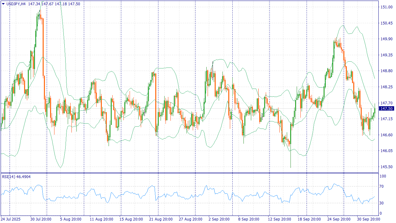 Йена консолидируется вблизи 147,5 за доллар после сильного недельного рывка. Поддержка национальной валюте идёт от сигналов Банка Японии: регулятор допускает дальнейшее повышение ставки при подтверждении прогнозов по инфляции и заработным платам. Одновременно риск-оф-сентимент на фоне приостановки работы федеральных ведомств США поддерживает спрос на защитные активы, куда традиционно относят иена-номинированные активы.