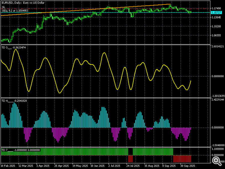 Инд. 7 - пересечение с 0 линией ( + значение - тренд вверх, - значение - тренд вниз).
