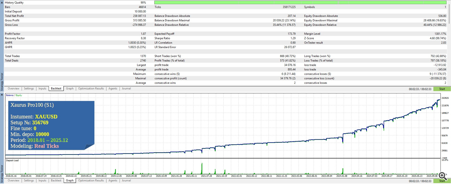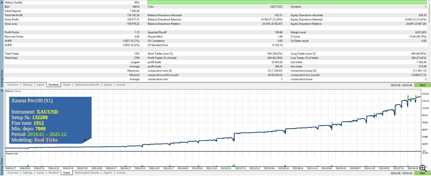 В процессе подготовки к публикации продукта Xaurus Pro100, и поиска эффективных настроек для него на базовом инструменте XAUUSD (он был выбран в виду своей выраженной трендовости, что соответствует общей характеристике торговой системы Xaurus), мы опробовали несколько различных источников котировок (торговых серверов брокеров), и убедились в том, что, на момент публикации, большинство из них имеют либо недостаточную, либо некачественную, либо вообще не имеют на своих серверах, необходимую для достоверной проверки результативности торговой системы, потиковую историю котировок требуемой глубины (мы использовали тесты Xaurus S1 начиная с 2018.01 по 2025.12).