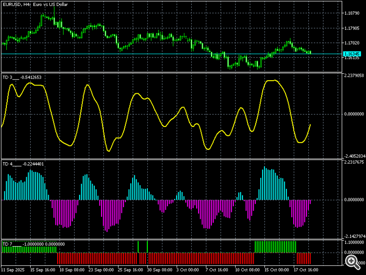 Инд. 7 - пересечение с 0 линией ( + значение - тренд вверх, - значение - тренд вниз).