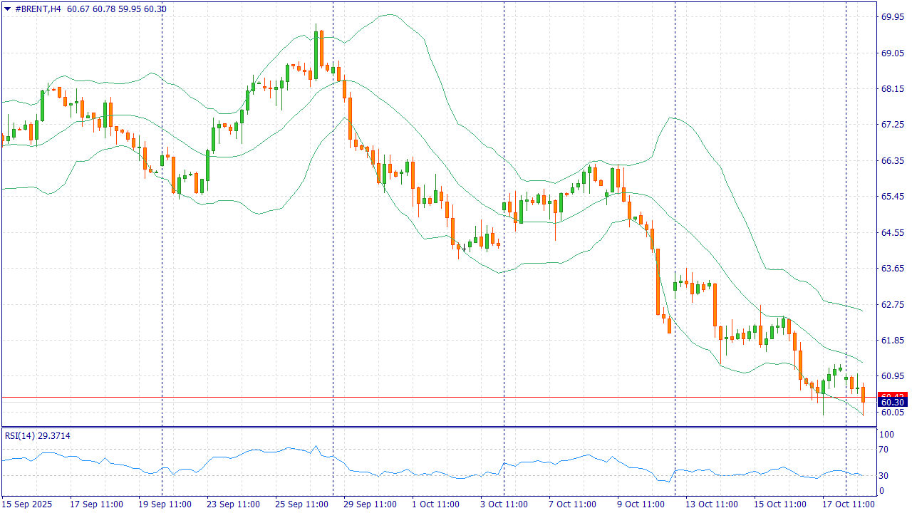 Brent входит в новую неделю вблизи 61 $ за баррель. Краткосрочный фон давит на котировки: агентства и банки отмечают ускорение предложения в 2025 г. и 2026 г., в том числе на фоне постепенной отмены ограничений добычи в ОПЕК+ и роста выпуска вне картеля. Одновременно прогноз по мировому спросу пересматривается более осторожно из-за замедления глобальной экономики и структурных факторов (энергоэффективность, электрификация транспорта). Внешнеторговые трения США–Китай и новости о запасах в США усиливают осторожность покупателей.