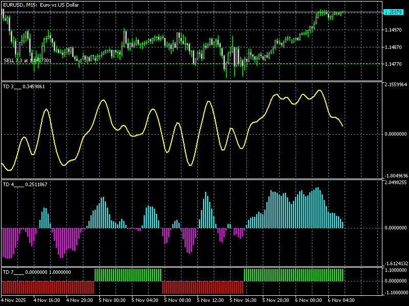 Инд. 7 - пересечение с 0 линией ( + значение - тренд вверх, - значение - тренд вниз).