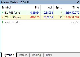 - В Терминале в Обзоре рынка оставить только нужные символы.