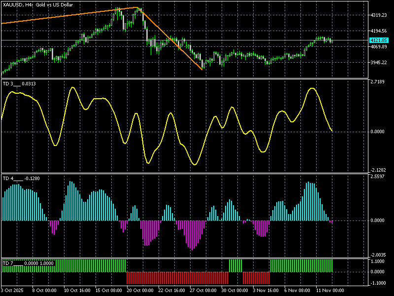 Инд. 4 - пересечение с 0 линией ( + значение - тренд вверх, - значение - тренд вниз),