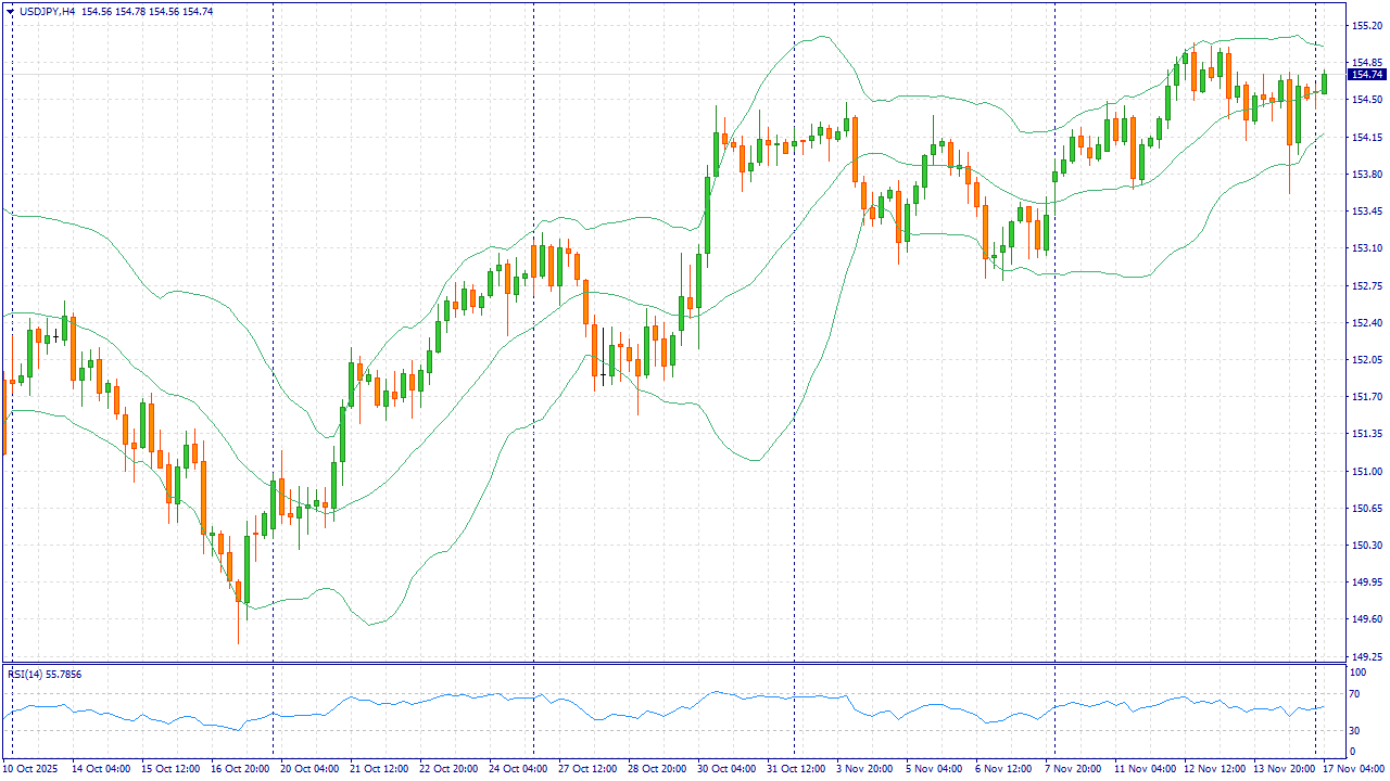 Пара USD/JPY торгуется вблизи 154.5, оставаясь возле многомесячных максимумов. Главный драйвер движения — широкий разрыв в доходностях облигаций США и Японии, который поддерживает спрос на доллар. Американская экономика показывает устойчивый рост, а ожидания быстрого и глубокого цикла снижения ставки ФРС в последнее время заметно скорректированы.