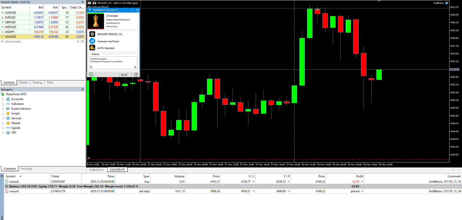 Эксперт GoldBaron открыл позицию на покупку. И сразу после входа в сильный минус. Обидно! Не очень хочется уходить на выходные с убытком.