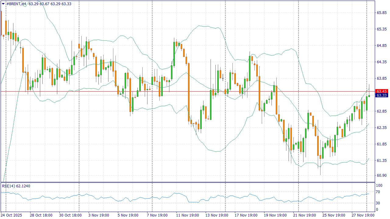Brent встречает неделю ростом после сигналов от альянса производителей о сохранении текущих параметров добычи и на фоне новостей о локальных перебоях в поставках. Рынок перераспределяет внимание от опасений избытка предложения к оценке рисков для логистики и экспорта, что возвращает премию за неопределённость в цены. Дополнительно поддержку оказывают ожидания более мягкой денежно-кредитной политики в США, которые через восстановление спроса на риск улучшают фон для товарных активов.