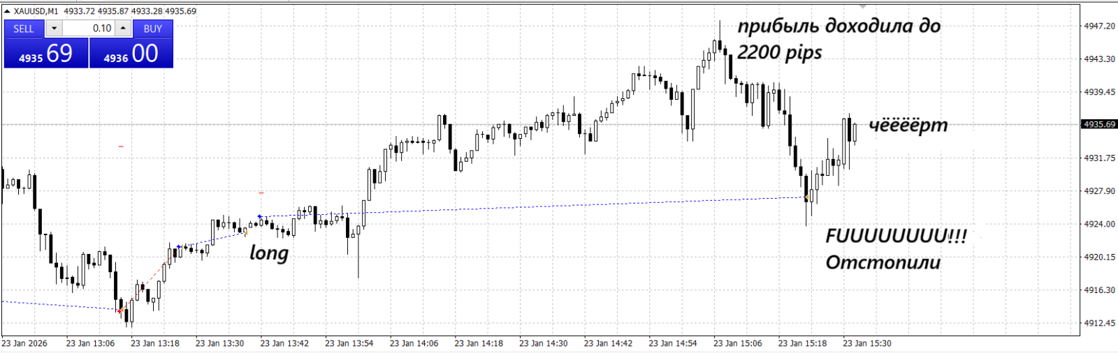 Как видно, был открыт long и налилась прибыль в 2200 pips. Но потом внезапно начался обвал и я словил стоп безубыточный. А потом как ни в чём ни бывало цена поползла вверх без меня. FUUUUUU!!! Что это? Разворот глобальный или мелкая коррекция? Как видно, до 5000 так и не дошли, может быть не дойдёт и вообще никогда цена. Так что расбредаемся, господа.
