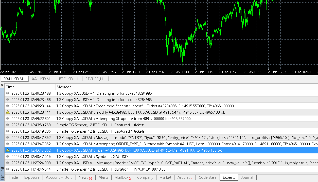 - для копировщиков/сигналов — текст сигнала (как он пришёл) + что терминал сделал в ответ.
