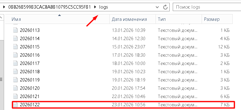 Файлы обычно именуются по дате. Используйте журналы за день , когда возникла проблема (или за соседний день, если событие произошло около полуночи), и лучше всего прикрепить архив .zip , содержащий оба файла: один из раздела «Эксперты», а другой из раздела «Журнал».
