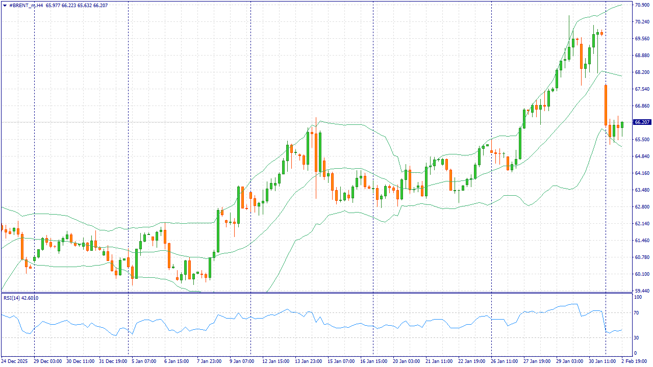 Brent под давлением: около 66.30 за баррель после сигналов о возобновлении диалога США и Ирана, что снизило опасения перебоев поставок. Укрепление доллара также сдерживает сырьё.