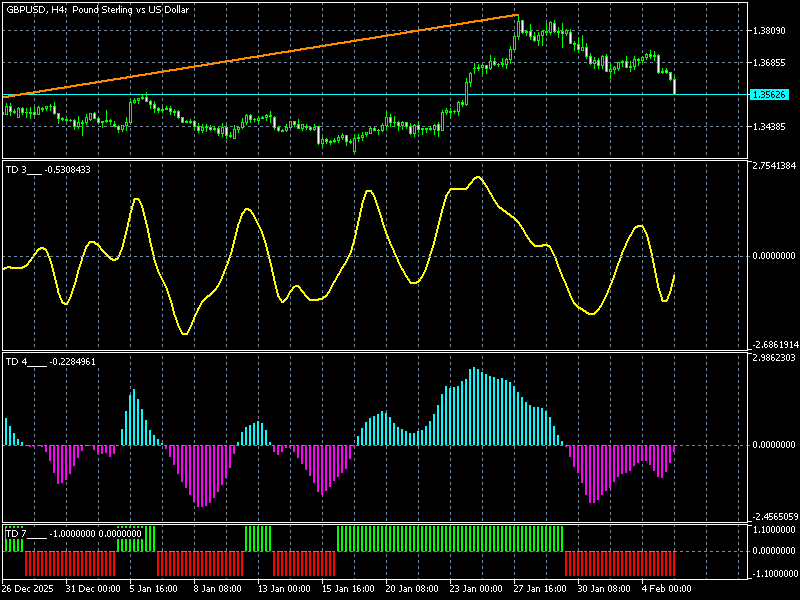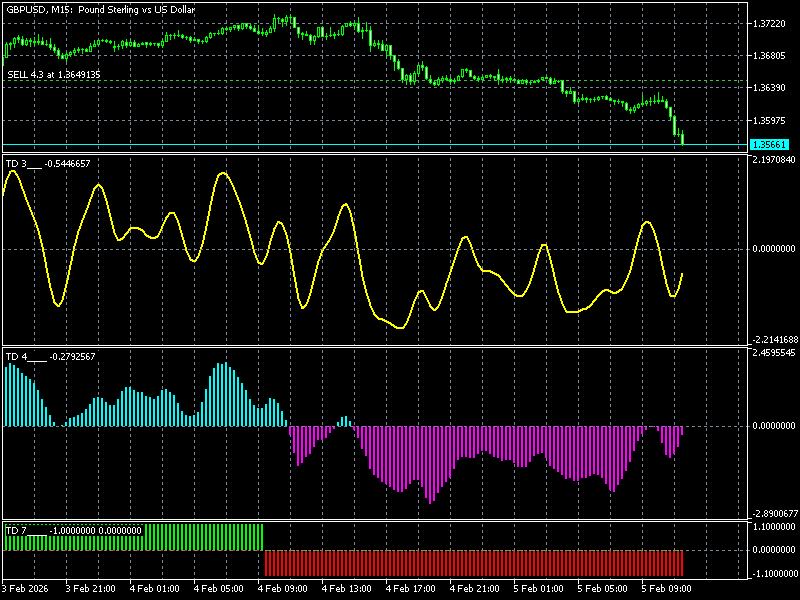 Инд. 4 - пересечение с 0 линией ( + значение - тренд вверх, - значение - тренд вниз),
