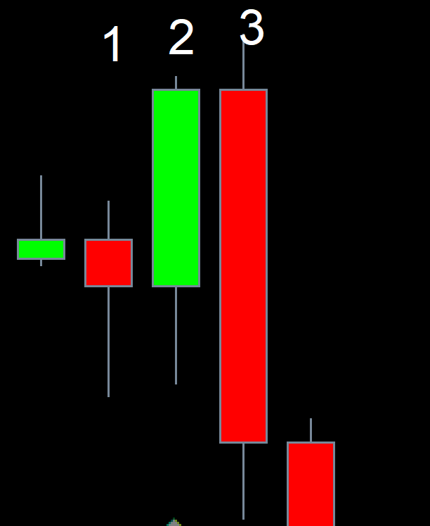 - Нисходящий Ударный бар - бар у которого цена закрытия ниже чем минимум предыдущего бара.