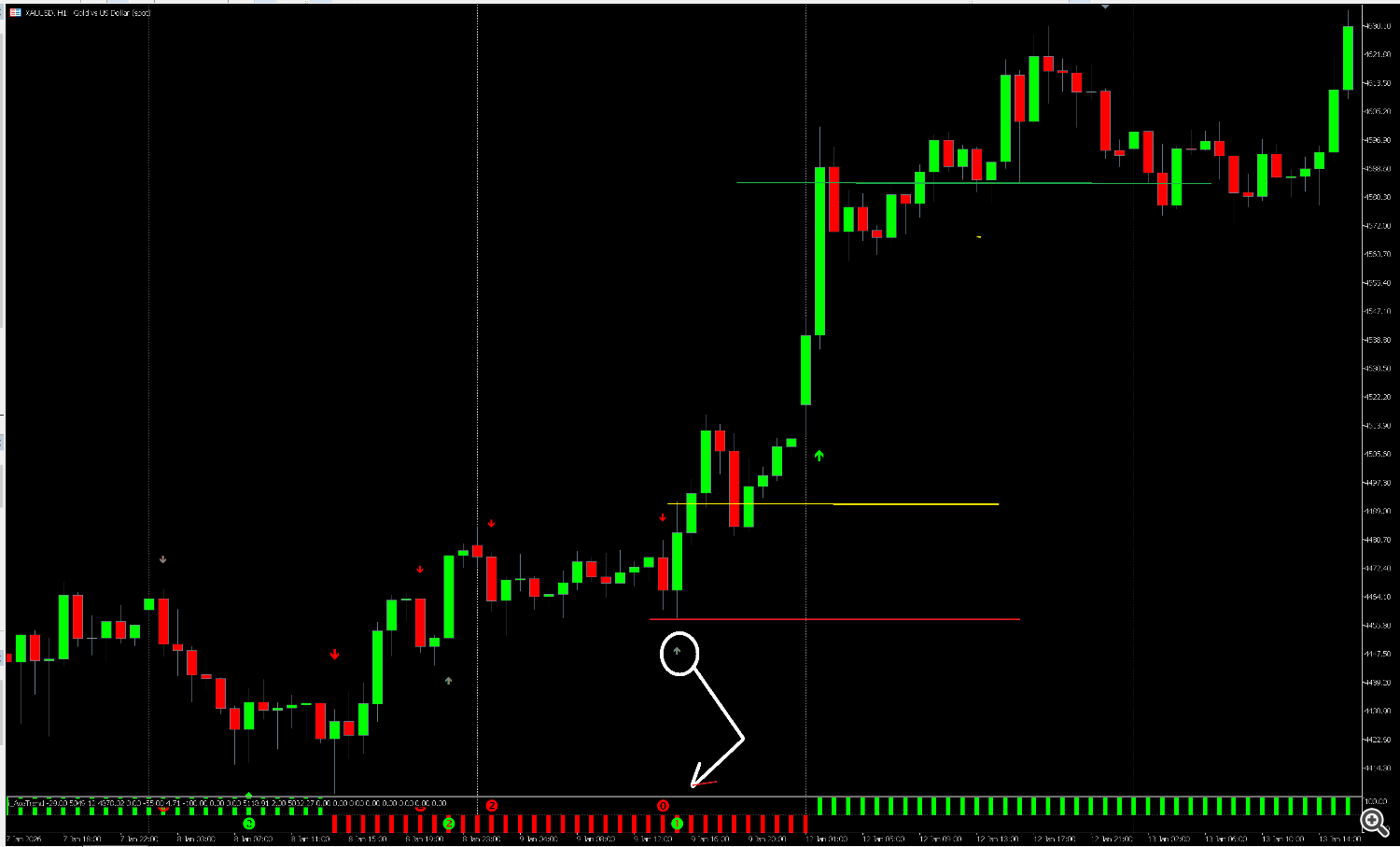 Вам не нужен тяжелый арсенал индикаторов. Хотя использование таких инструментов, как AceTrend, ускоряет поиск, паттерн легко находится и невооруженным глазом: три бара, где каждый последующий закрывается за границами предыдущего, создавая эффект «трех шагов насилия» перед пробоем. -