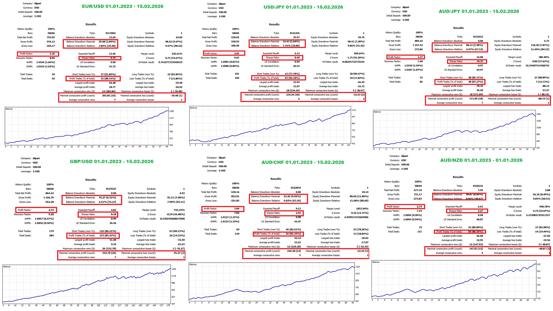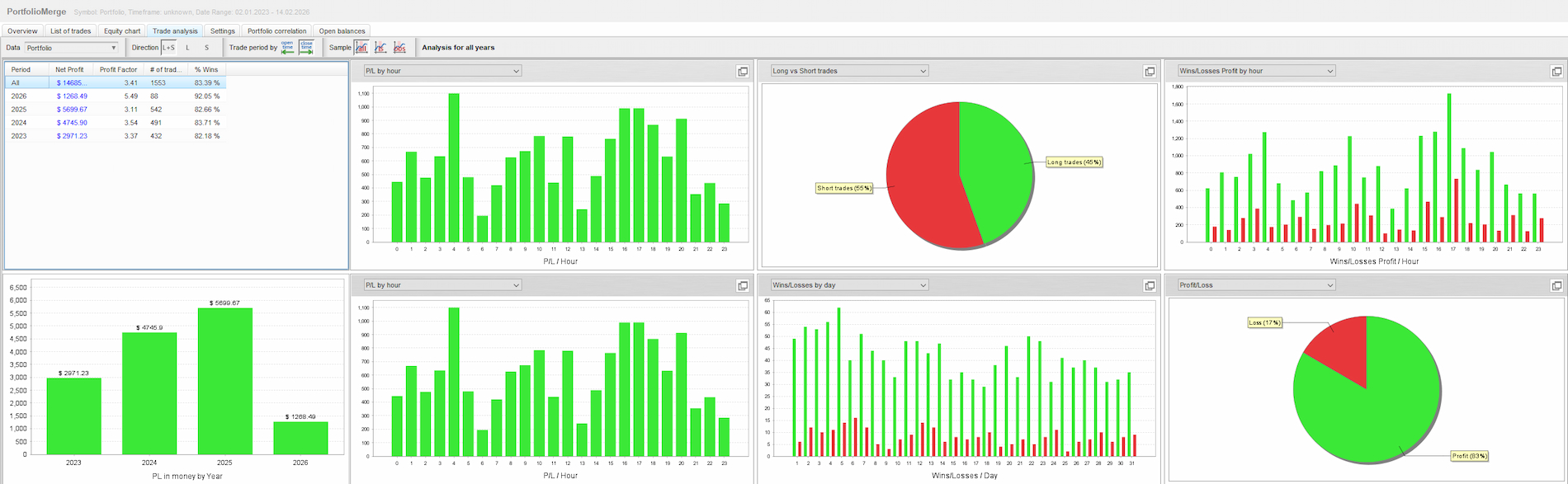 Portfolio Results (QuantAnalyzer, Alpari ECN, 2023–2026)