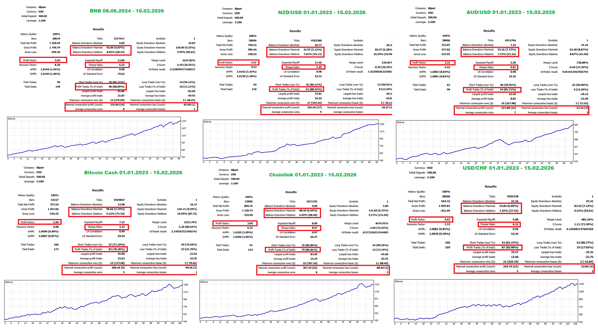 Run multiple instruments simultaneously. The low correlation between Crypto and Forex creates smooth capital growth: when one instrument is in drawdown, another compensates for it.
