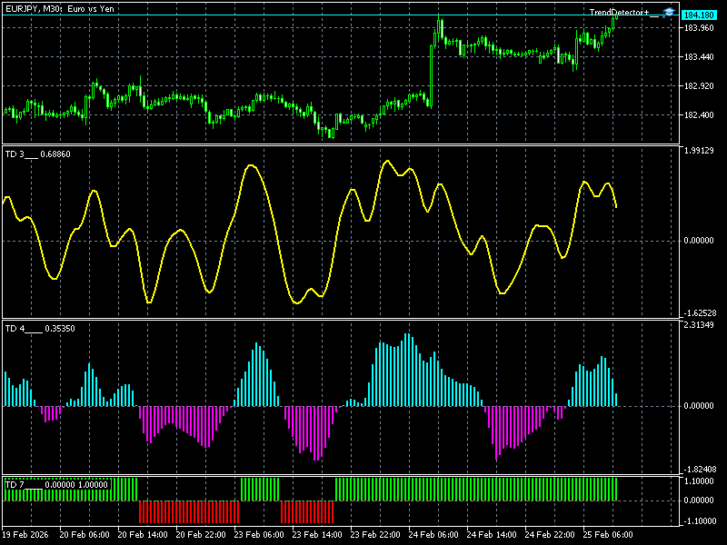 Инд. 7 - пересечение с 0 линией ( + значение - тренд вверх, - значение - тренд вниз).