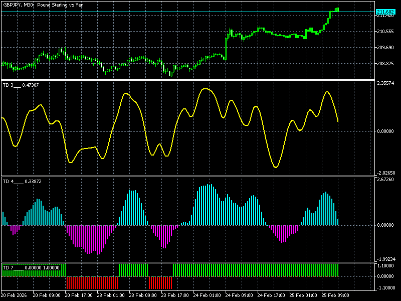 Инд. 7 - пересечение с 0 линией ( + значение - тренд вверх, - значение - тренд вниз).