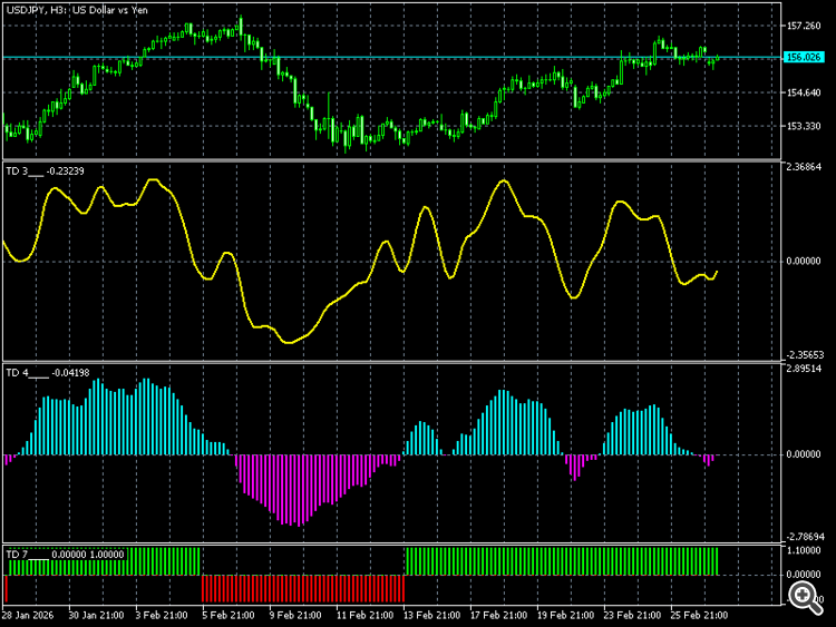 Инд. 3 - пересечение с 0 линией ( + значение - тренд вверх, - значение - тренд вниз),
