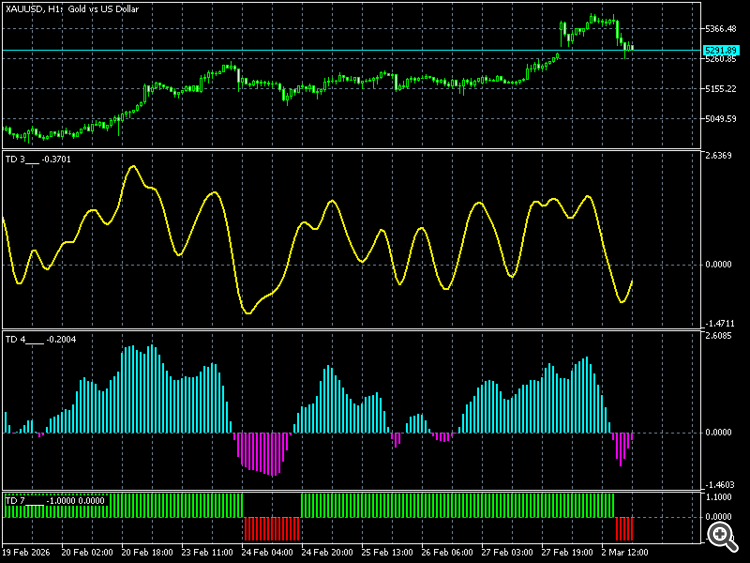 Инд. 7 - пересечение с 0 линией ( + значение - тренд вверх, - значение - тренд вниз).