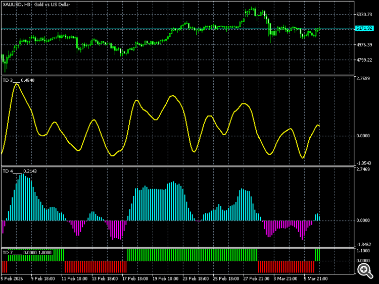 Инд. 3 - пересечение с 0 линией ( + значение - тренд вверх, - значение - тренд вниз),