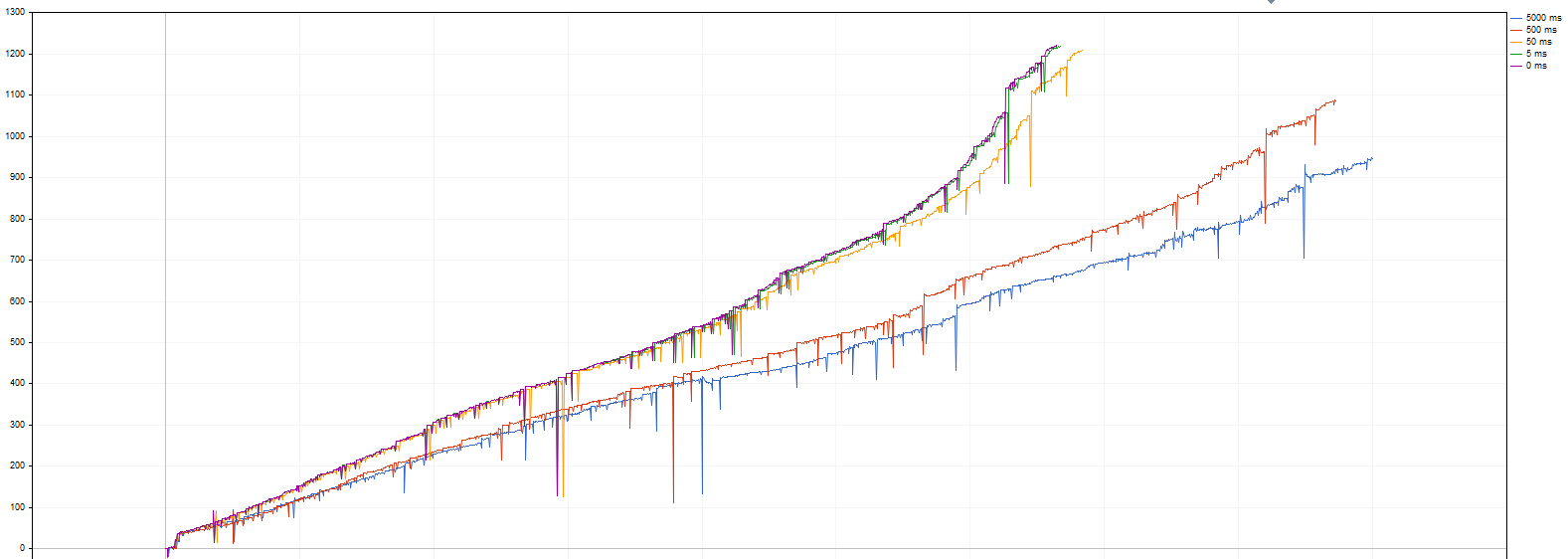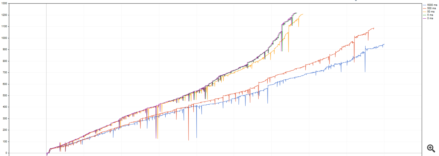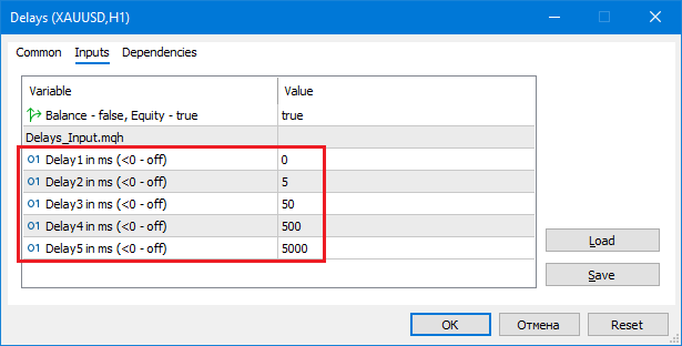 Поэтому был написан универсальный скрипт Delays.mq5, позволяющий посмотреть зависимость тестерной прибыли от длительности исполнения ордеров для любого советника.