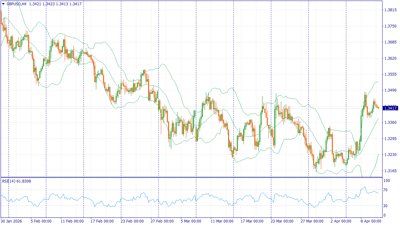 GBP/USD в пятницу торгуется у 1,3420, сохраняя большую часть недавнего подъема. Фунт выигрывает на фоне общего ослабления доллара после объявления перемирия между США и Ираном, хотя рынок по-прежнему сомневается в устойчивости договоренностей. Снижение напряженности уменьшает давление на цены энергоносителей и поддерживает спрос на более доходные активы.