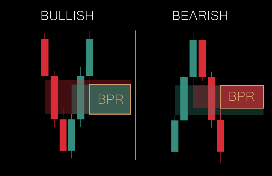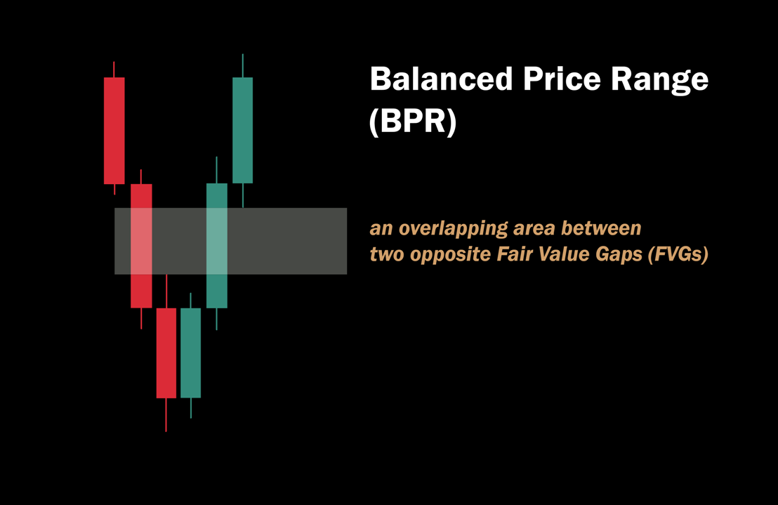 Balanced Price Range (BPR) is a market equilibrium zone that forms as a result of overlapping two opposite Fair Value Gaps (FVGs).