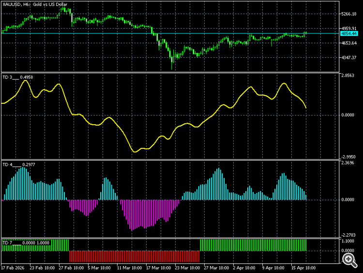 Инд. 4 - пересечение с 0 линией ( + значение - тренд вверх, - значение - тренд вниз),