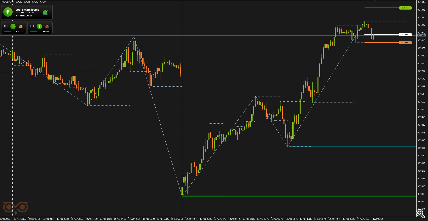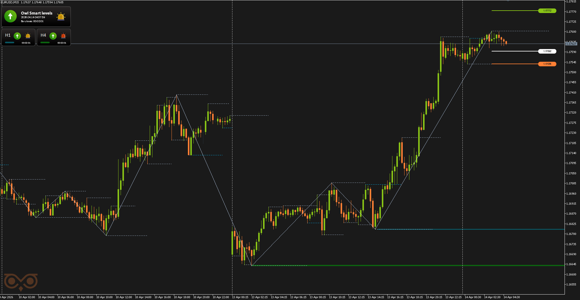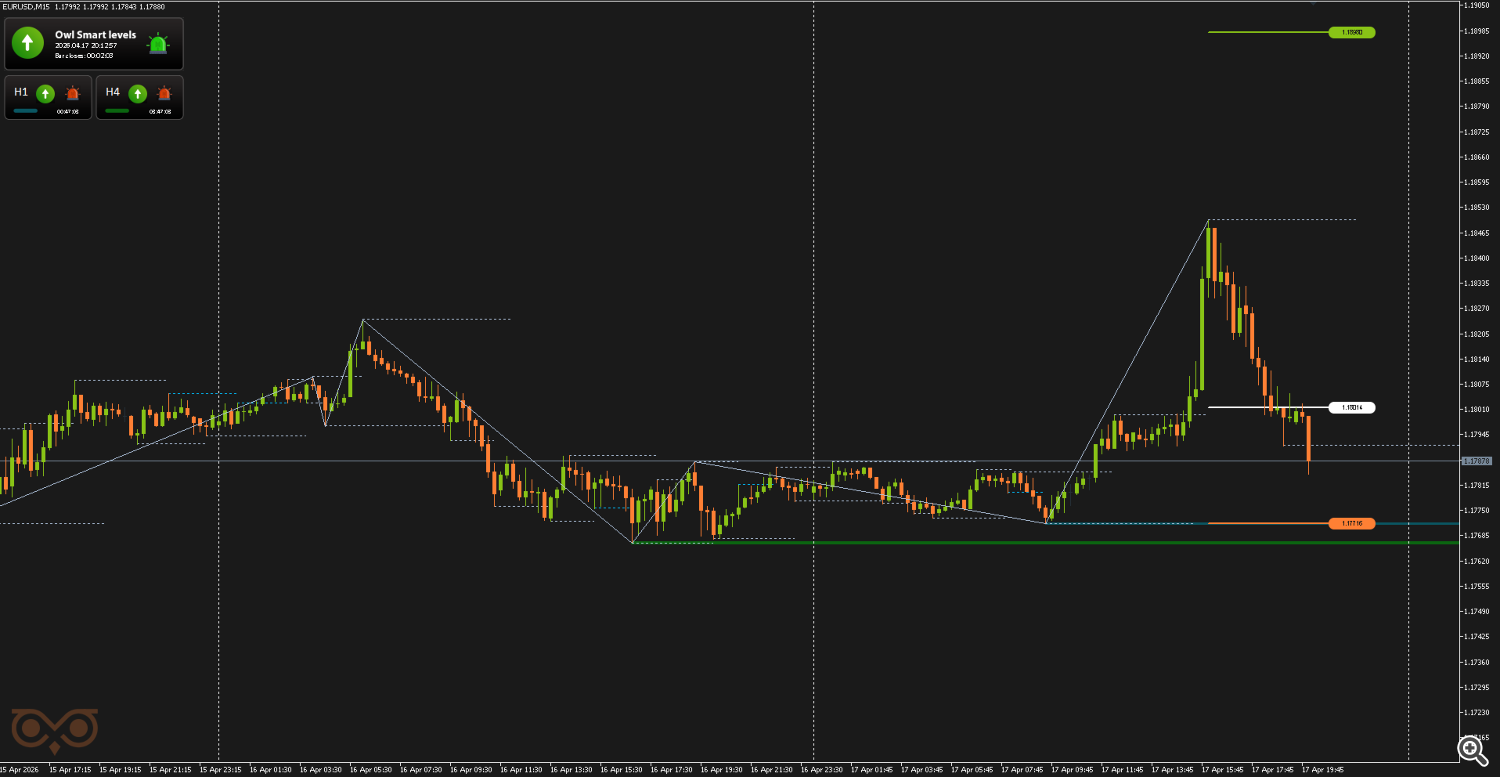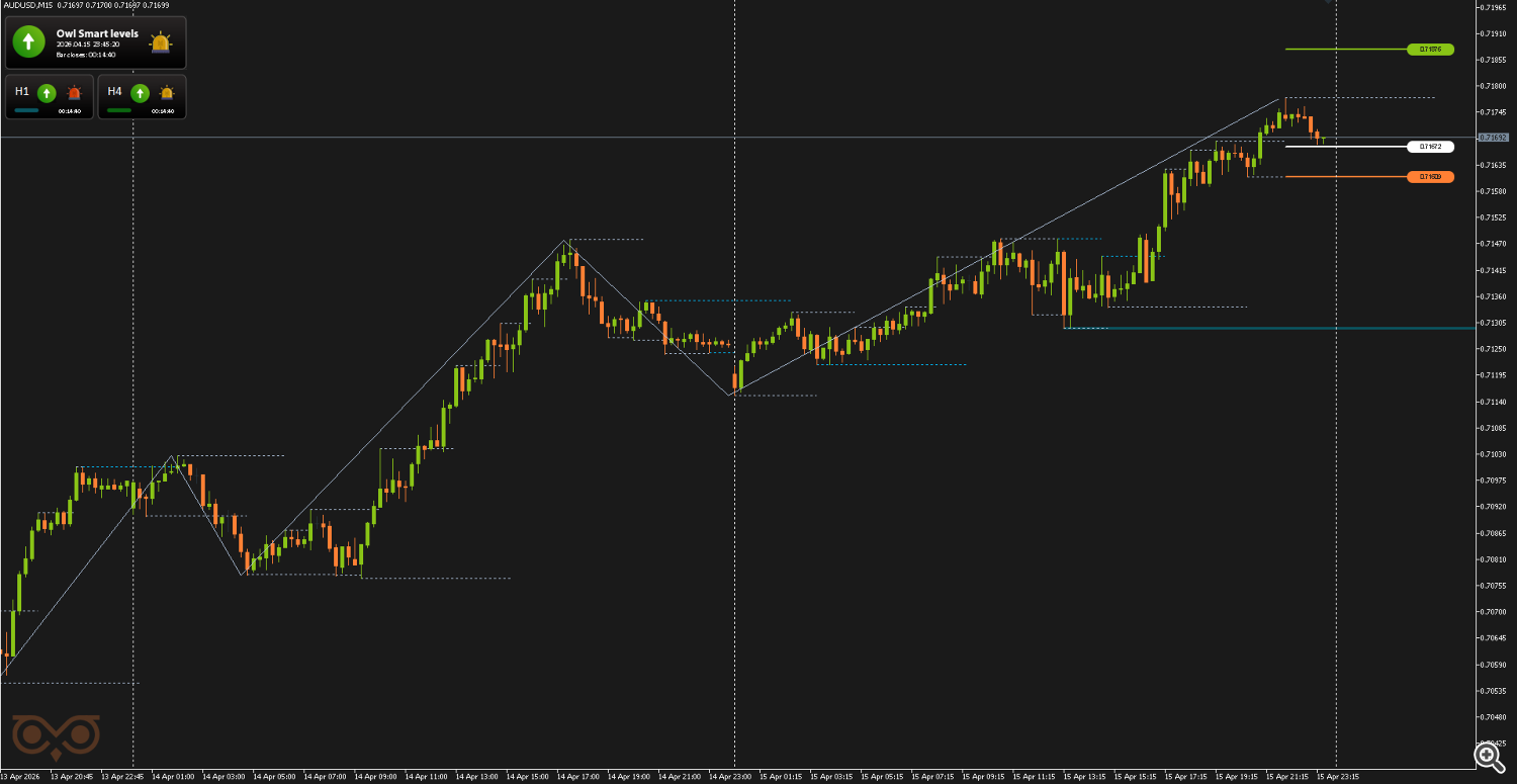 Сегодня я представлю вам обзор сделок, совершенных с использованием торговой системы Owl — умные уровни для валютных пар EURUSD, GBPUSD и AUDUSD за неделю с 13 по 17 апреля 2026 года. В отчёте разобраны все сделки, сформированные по сигналам системы, с учетом строгого риск-менеджмента и заранее определённых уровней входа и выхода из позиции.