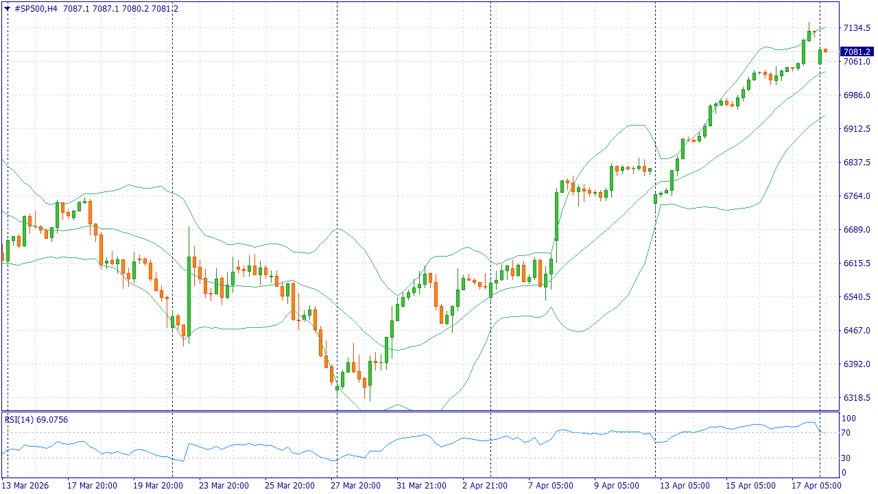 Индекс S&P 500 завершил прошлую неделю на новом рекордном уровне около 7126 пунктов. Рынок поддерживают ожидания сильной корпоративной отчётности: на этой неделе результаты публикует почти пятая часть компаний из индекса, а общий рост прибыли за первый квартал оценивается примерно в 14% к прошлому году. Это сохраняет интерес к американским акциям даже при внешней нестабильности.