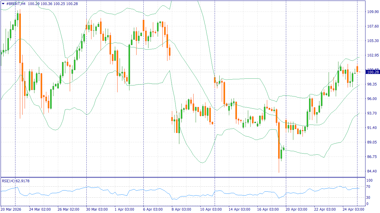 Brent начинает неделю около 107,50 доллара за баррель, удерживаясь у максимумов с начала апреля. Основная причина роста — задержка переговоров США и Ирана и ограничение поставок через Ормузский пролив. Рынок опасается перебоев в экспорте, поэтому премия за риск остаётся высокой.