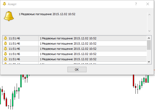 Простой индикатор, информирующий трейдера о появлении свечной фигуры "Бычье поглощение" или "Медвежье поглощение" на всех таймфремах.