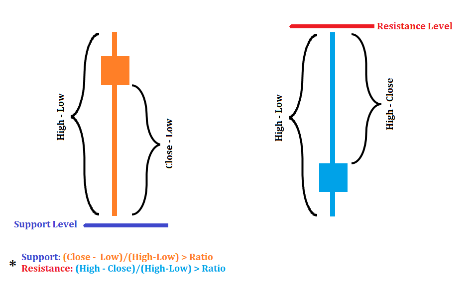 - Правило 2(бычья свеча на уровне res.): если close - low > Jump Factor & (close-low)/(high-low)>ratio