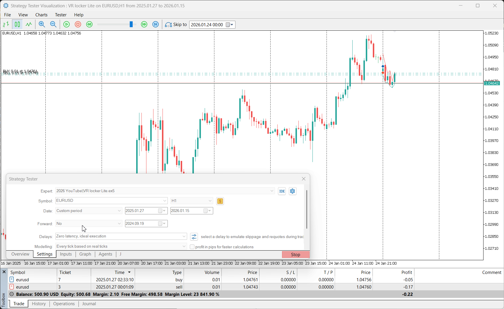 Представленный торговый алгоритм VR Locker Lite демонстрирует работу с одним положительным замком: