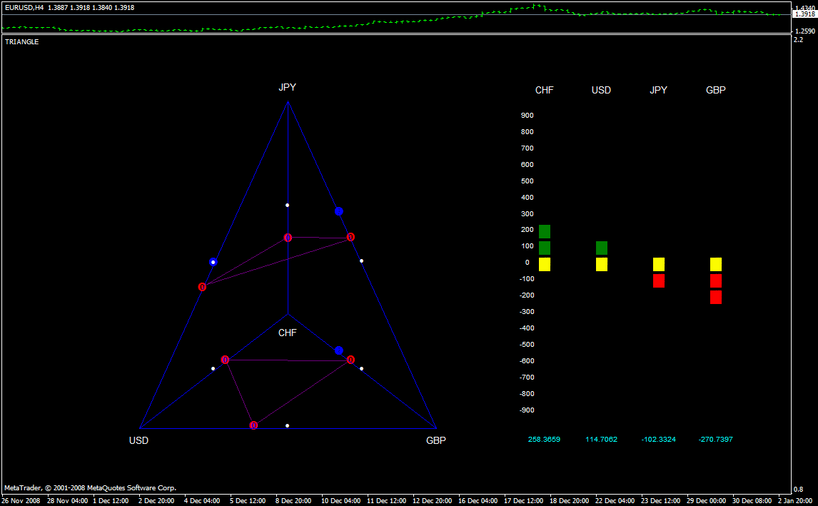 Положение красных и синих точек на рёбрах треугольника даёт нам анализ волатильности той или иной пары взависемости от таймфрейма - это является одной из основных задачь данного индикатора. И от положения добавленных треугольников, скажу честно-не вижу особой пользы.