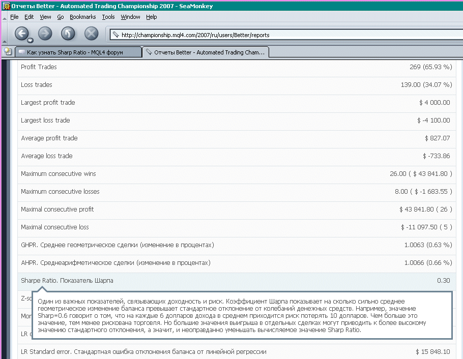 Кто знает, как узнать Sharp Ratio после теста робота?