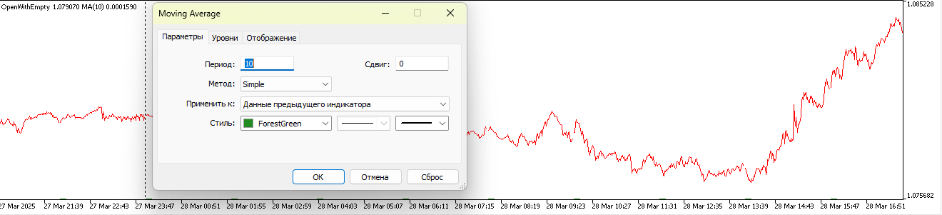 Накидываем на него SMA, ожидаем что как минимум получатся мелкие чёрточки - SMA будет рассчитана в тех фрагментах где не попался EMPTY_VALUE.