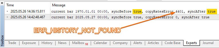 Что именно синхронизировано если SERIES_SYNCHRONIZED возвращает true? На скриншоте ниже история синхронизирована не смотря на то, что ее нет.