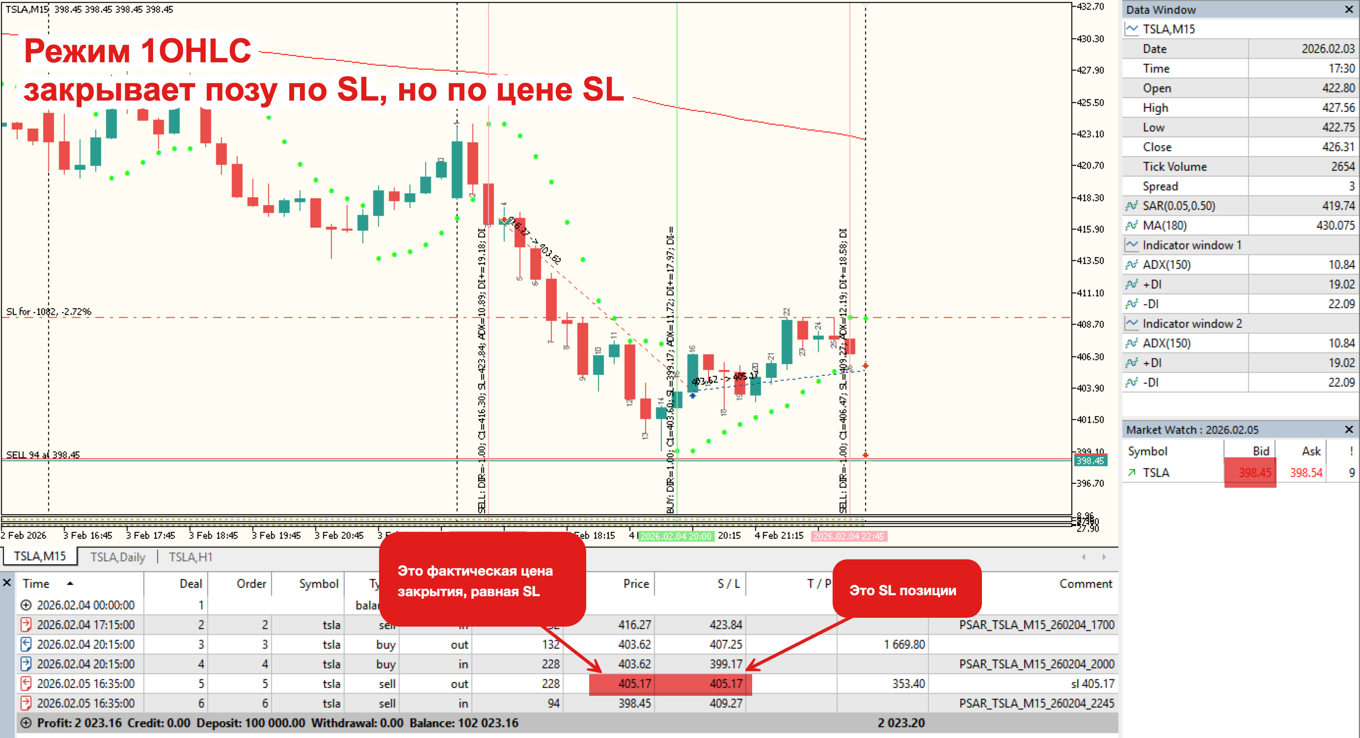 DEAL_PRICE для SL в режиме 1OHLC совпадает строго с ценой SL