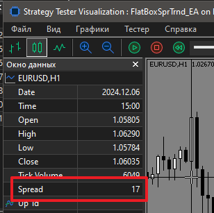 Это минимальный спред (такое вынужденное официальное заглядывание в будущее) за время жизни всего бара, а не спред на открытии.