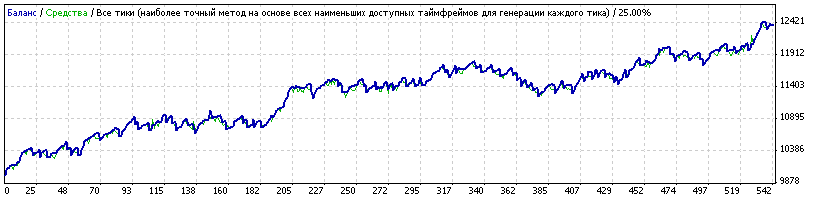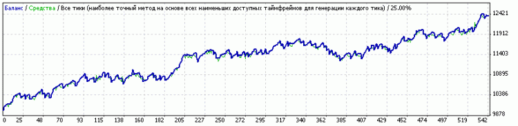 ЭТо график баланса по Даксу на тф=м1 из тестера с 1 мая по сей день. Где-то после 450-сделки идет период "вне оптимизации" (форвард). (пост. лот=0.1)
