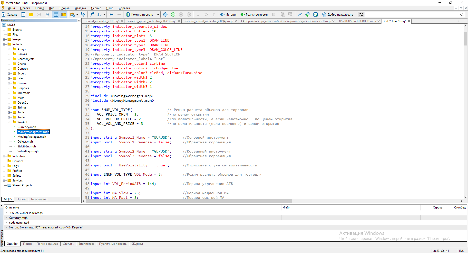 далее можно сразу оттестировать на пользовательском символе. тут также к тому, что индикатор Spread_I_env - как таковой и не нужен.