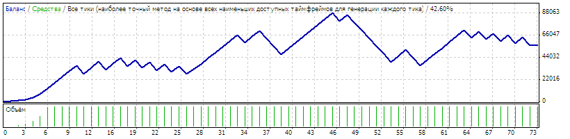 | Всего сделок | 73 | Короткие позиции (% выигравших) | 28 (60.71%) | Длинные позиции (% выигравших) | 45 (68.89%) |