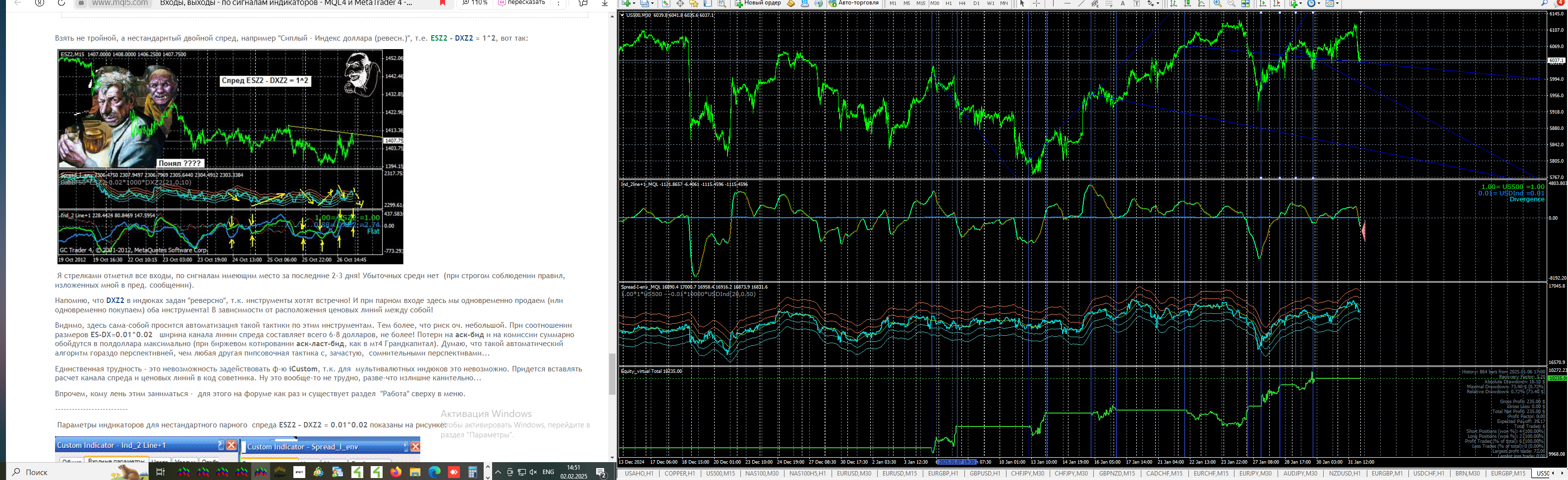 есть в ЛК запросы как торговать спреды и портфели и прочее - если может индикатор не всгда спреда на график и все можно поставить... торгуется так: заходится в позиции по спреду - портфелю и ставится на график индикатор МТ 4 iEquity и далее уже при отображении кривой эквити портфеля на графике одного из символов - торгуется сам график портфеля - изначально в лонги и все - вот картика портфеля от лонга:
